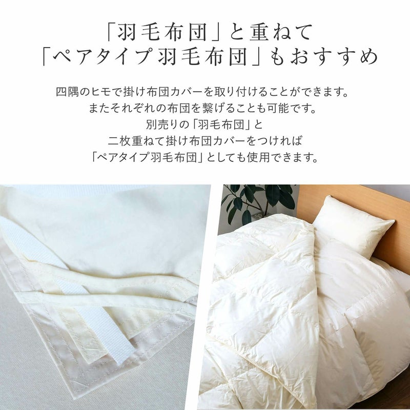 夏はこれ一枚でOK!別売りの「羽毛掛け布団」と重ねて、「ペアタイプ」としてお使いいただくことをオススメします。