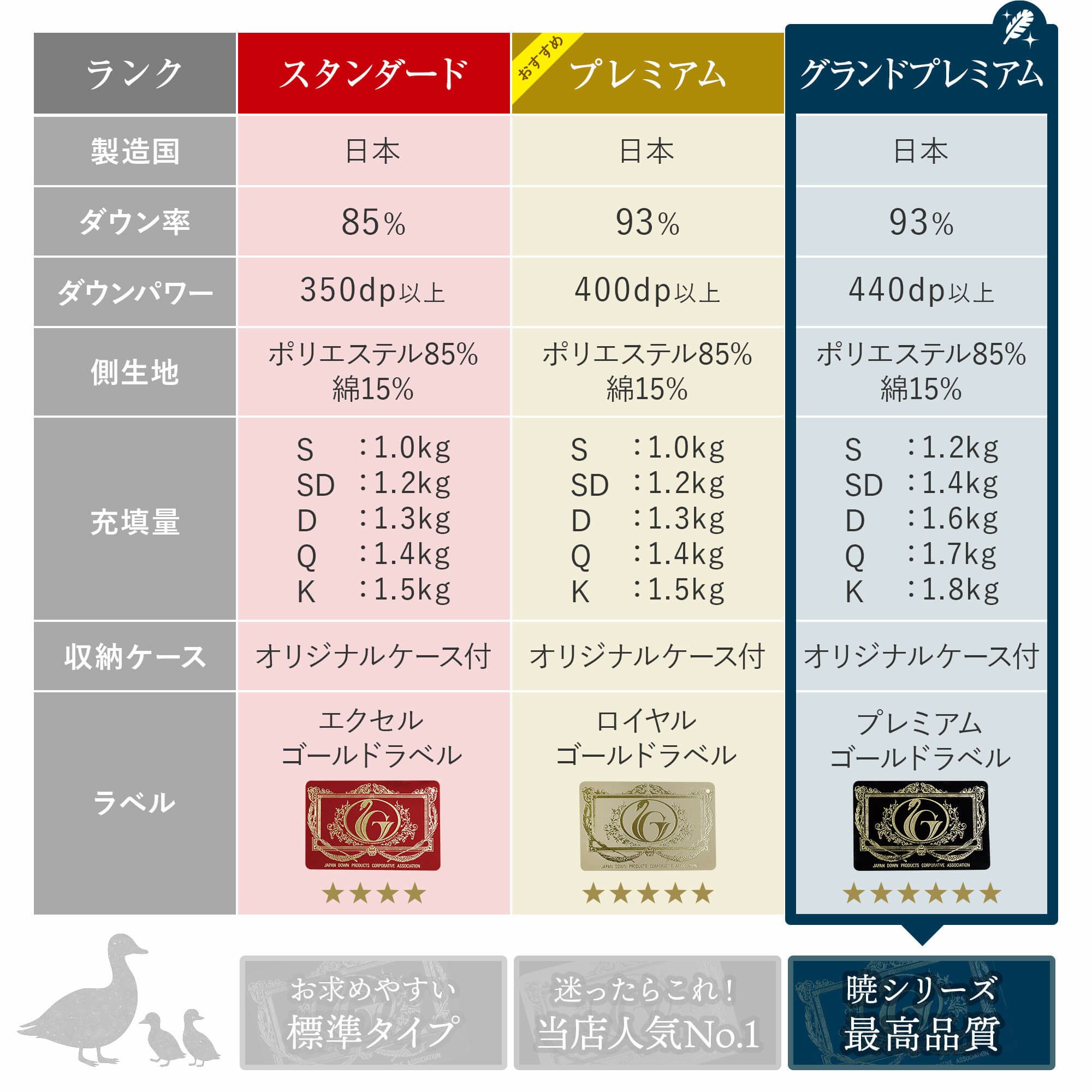 日本羽毛製品協同組合が定める最高級ランク「プレミアムゴールドラベル」を取得した、当店オリジナルの国産合掛け羽毛布団です。防臭、抗菌加工を施しており、安心安全にご使用いただけます。