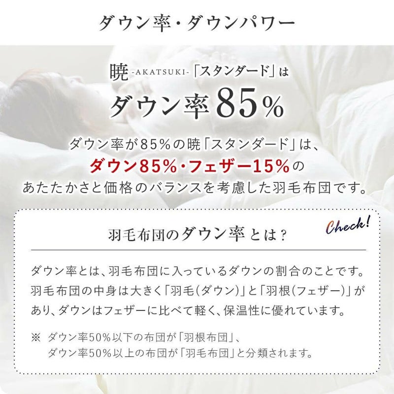 暁-AKATSUKI- スタンダード肌掛け羽毛布団 210 x 210cm