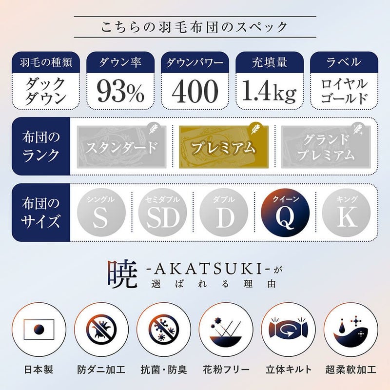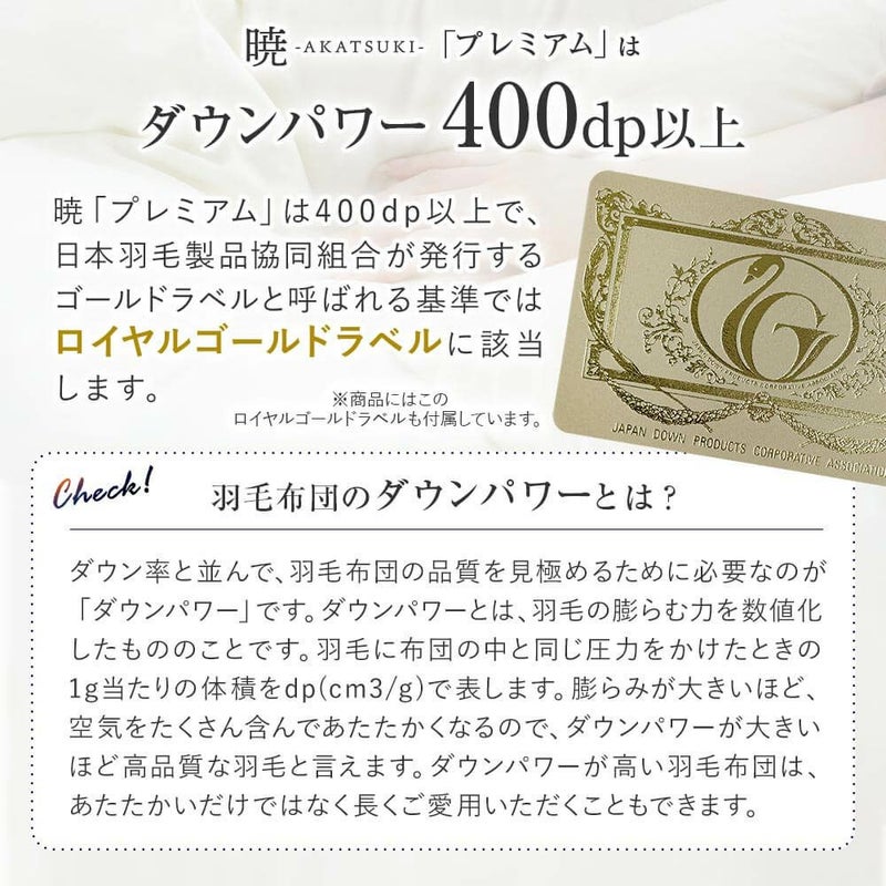 暁-AKATSUKI- プレミアム合掛け羽毛布団 210 x 210cm