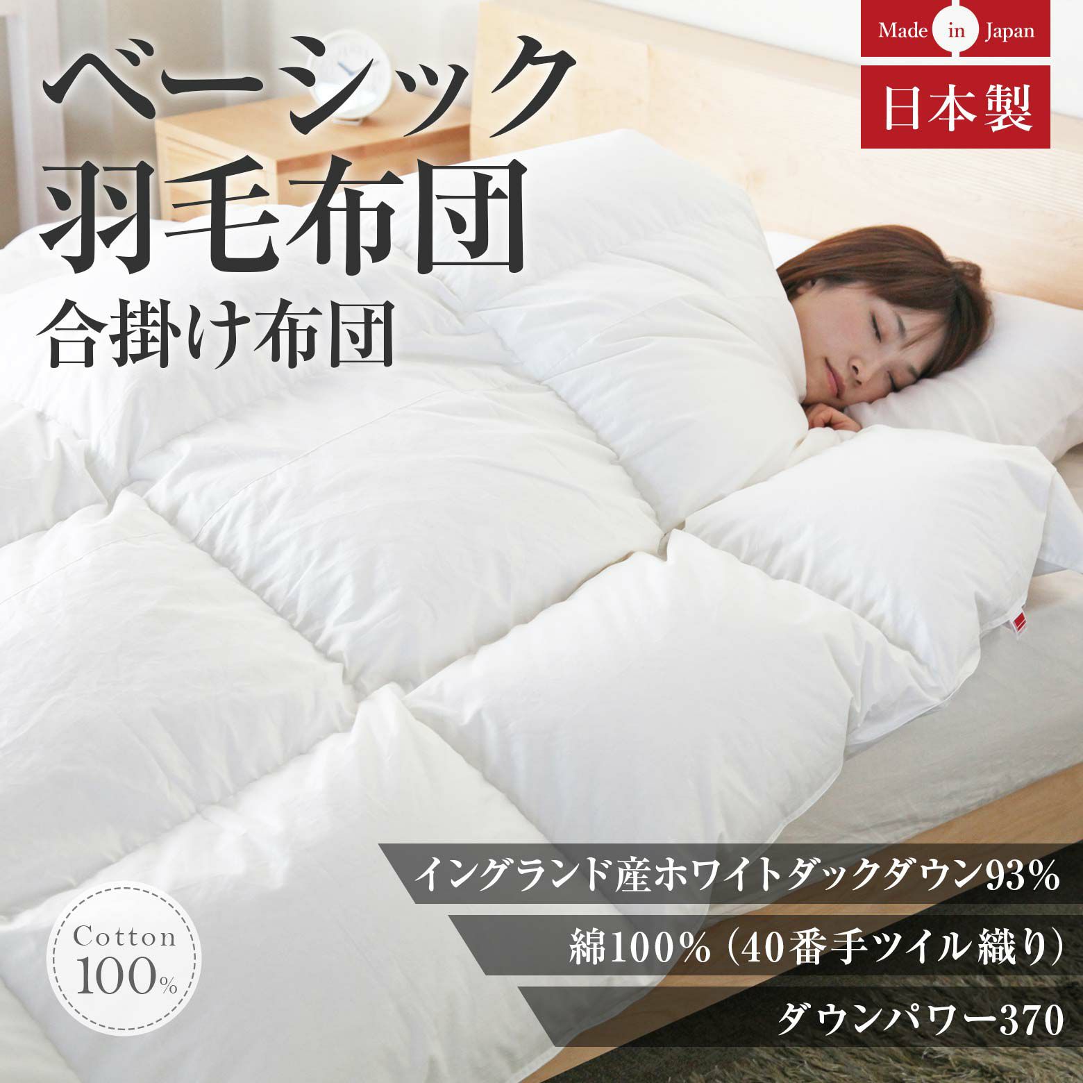 詰め物:イングランド産ホワイトダウン 93%、フェザー7%