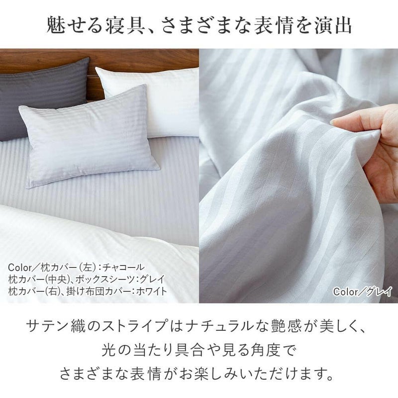ラグジュアリーな雰囲気を演出するサテン織りの生地を使い高級感のあるストライプ柄に仕上げました。ホテルのような落ち着いた色合いで、大人の美しさを演出します。