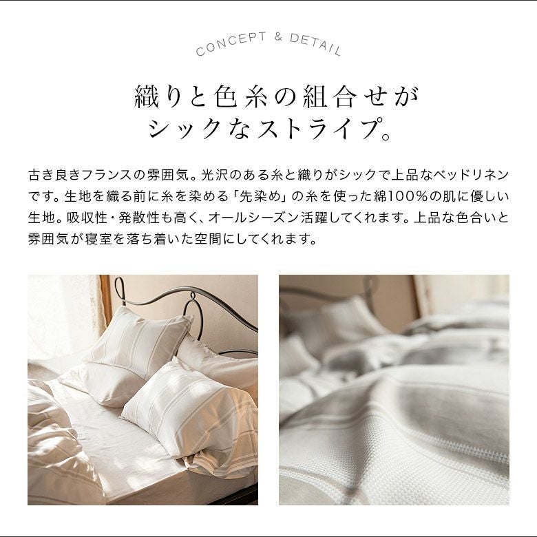 ストライプ柄サテン織り寝具エクラ