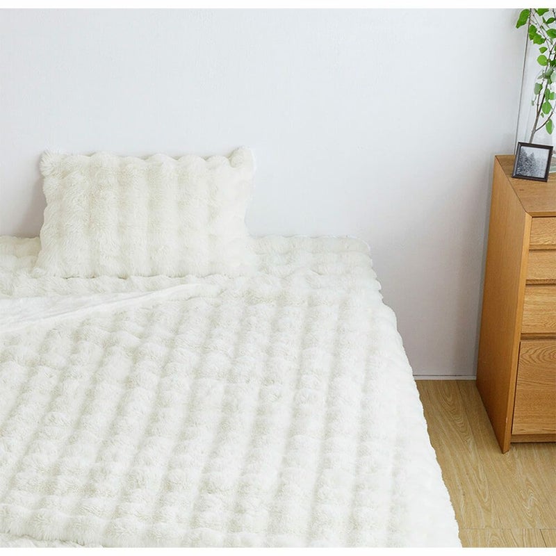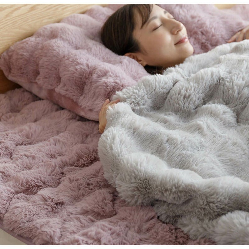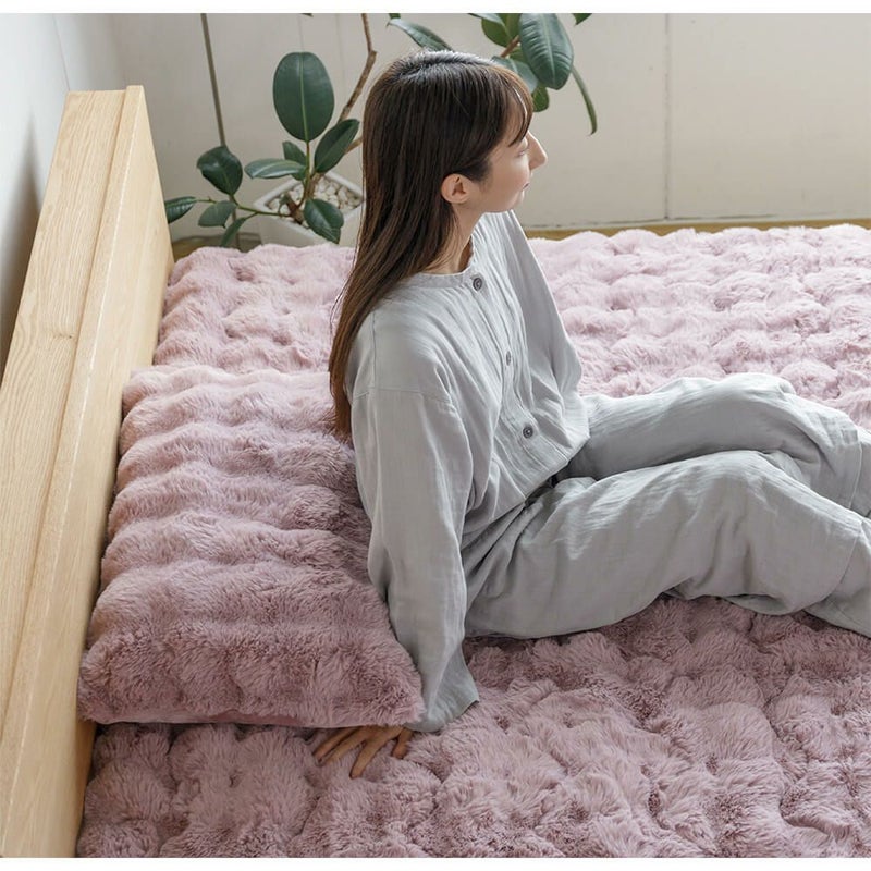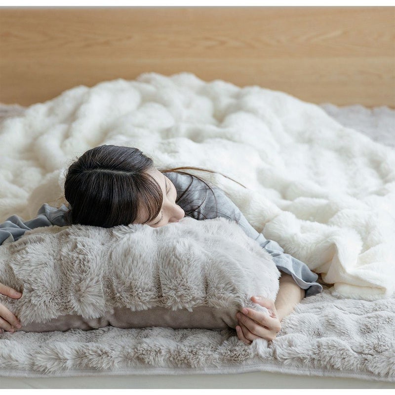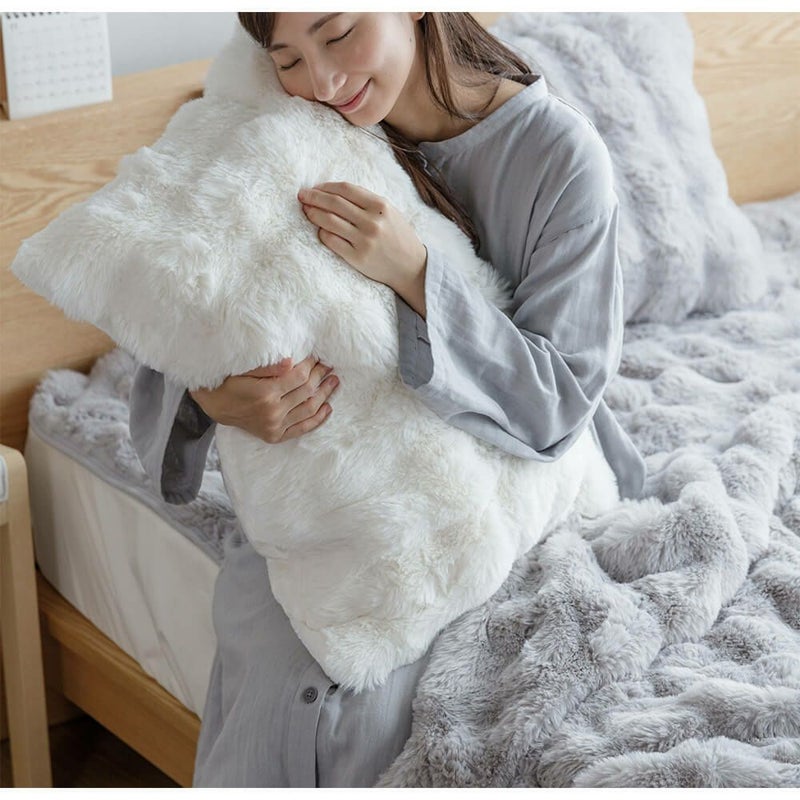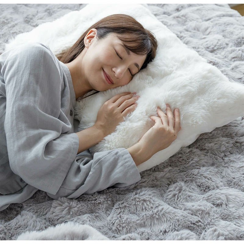 まるで雲の上のようなふわふわ感、とろけるような至福の肌ざわり。もこもこのデザインと、素材が持つなめらかな色合いで、お部屋のインテリアとしてもオススメです。