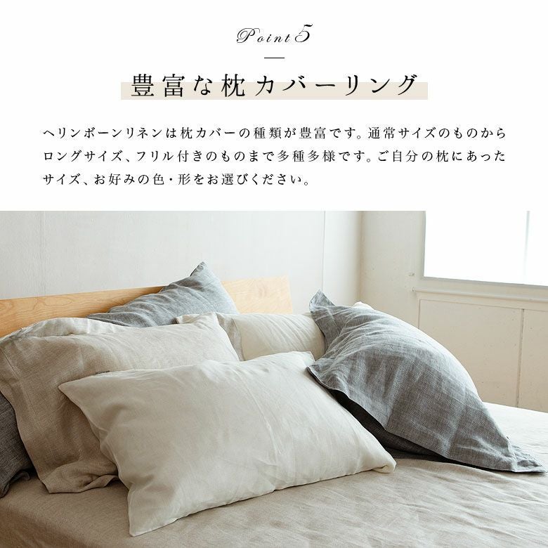 ヘリンボーンリネン【枕カバー】フリル付