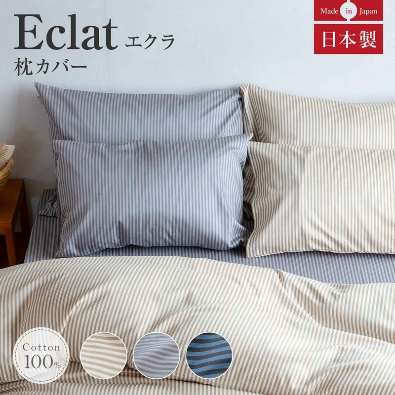 国産 サテンストライプ eclat (エクラ)【枕カバー】(50×70cm)