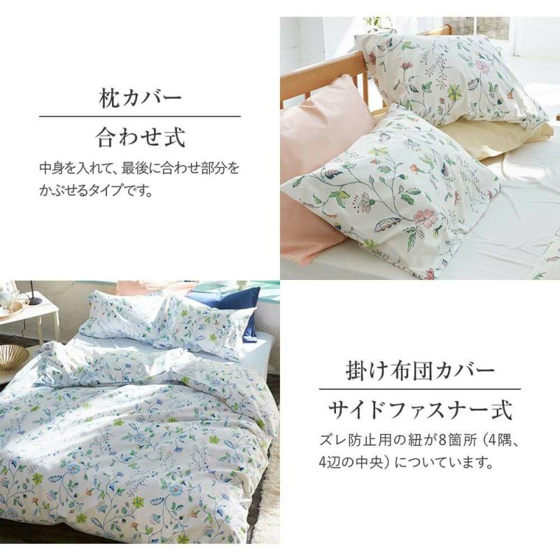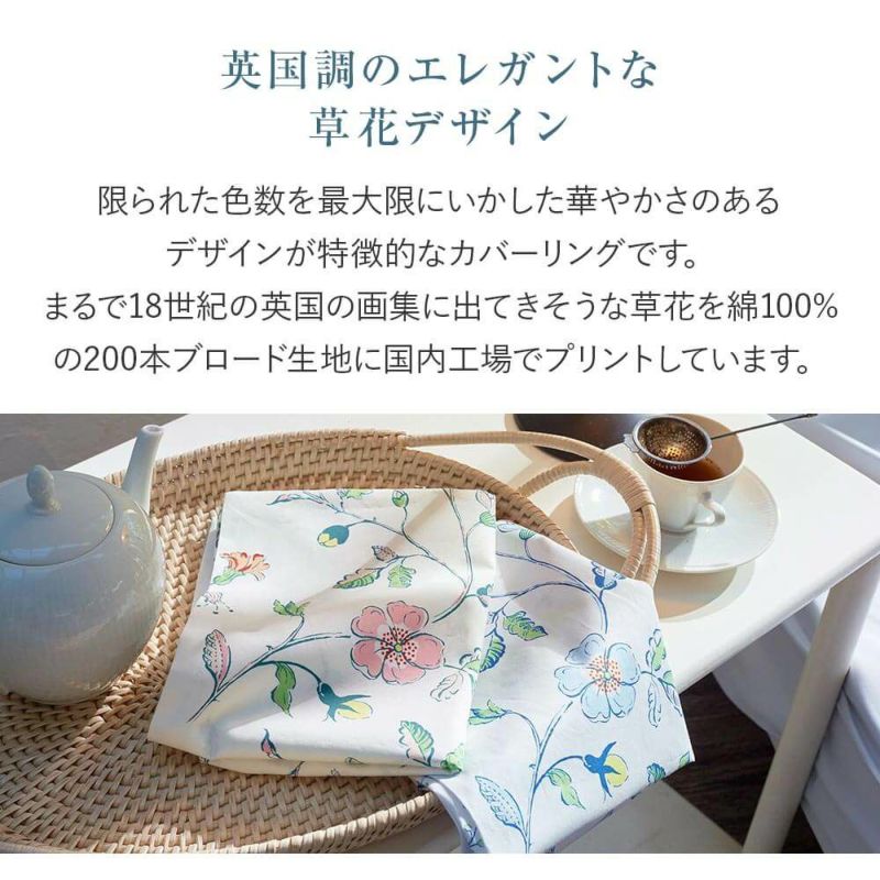18世紀の英国の画集に出てきそうな草葉。エレガントさの中に可愛らしさを合わせ持った更紗風の花柄で寝室が優しい空気に包まれます。