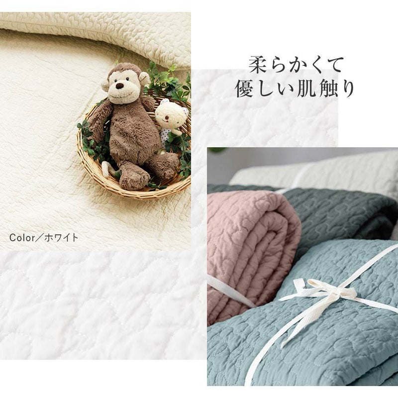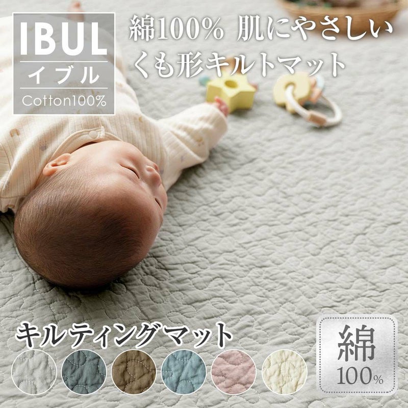 韓国インテリアでお馴染みの生地「イブル」。デコボコしたキルティングを施しているので立体感と心地よさが魅力。本製品のイブル生地や中綿は、コットン100%だから赤ちゃんにも優しい素材でできています。使い込むほどにふんわりと柔らか。夏はサラっと、冬はあたたかく、1年中快適にお使いいただけます。