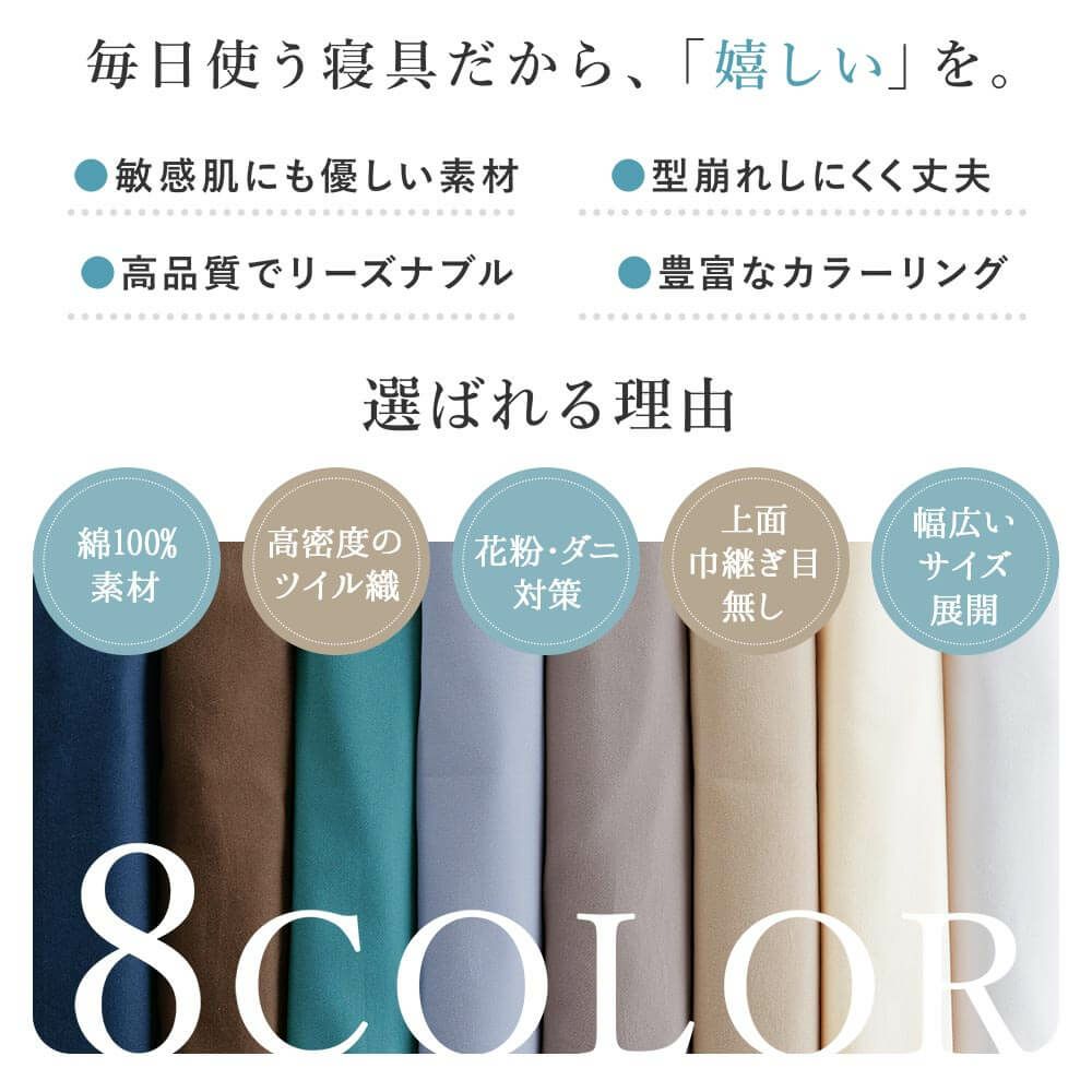 通常よりも密度を上げて織り上げているため、シワになりにくく耐久性の高い綿100%ツイル生地を使用。毎日のようにお洗濯しても大丈夫。毛玉にもなりにくいのでサラリと快適です。生地の密度が高いので、ダニ・ホコリなどが通る隙間がなく、防虫剤を使うことなく防ダニ効果を発揮します。