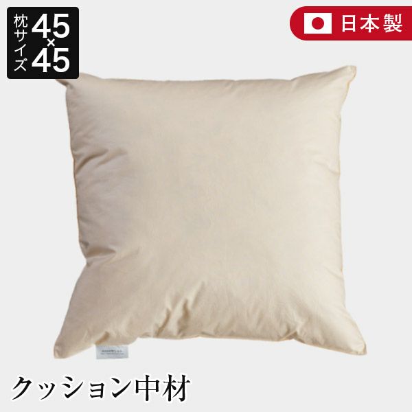 45cm×45cmサイズのクッションの中材です。詰わたはスモールフェザー100%でしっかりボリュームがあります。