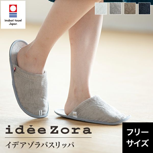 日本最大のタオル産地、愛媛県今治市で生産されたこだわりのブランド「イデアゾラ(ideeZora)」。シンプルでナチュラルなカラー展開が魅力!お風呂上りに濡れた足のまま履けて、洗濯機で丸洗いも可能!吸水性に優れ、履き心地も抜群な高品質スリッパです。