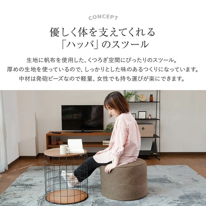 フィット ふんわり おしゃれ カジュアル ビーズ 帆布 ハッバ スツール 丸型