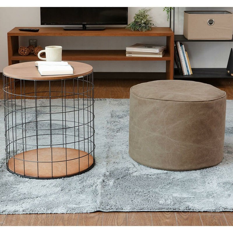 生地に帆布を使用した、くつろぎ空間にぴったりのスツール。厚めの生地を使っているので、しっかりとした味のあるつくりになっています。中材は発砲ビーズなので軽量、女性でも持ち運びが楽にできます。