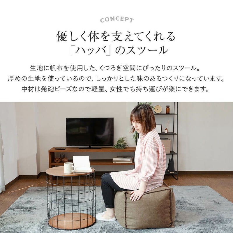 フィット ふんわり おしゃれ カジュアル ビーズ 帆布 ハッバ スツール 角型