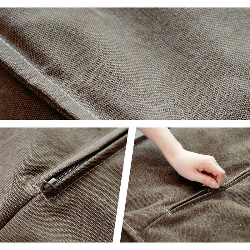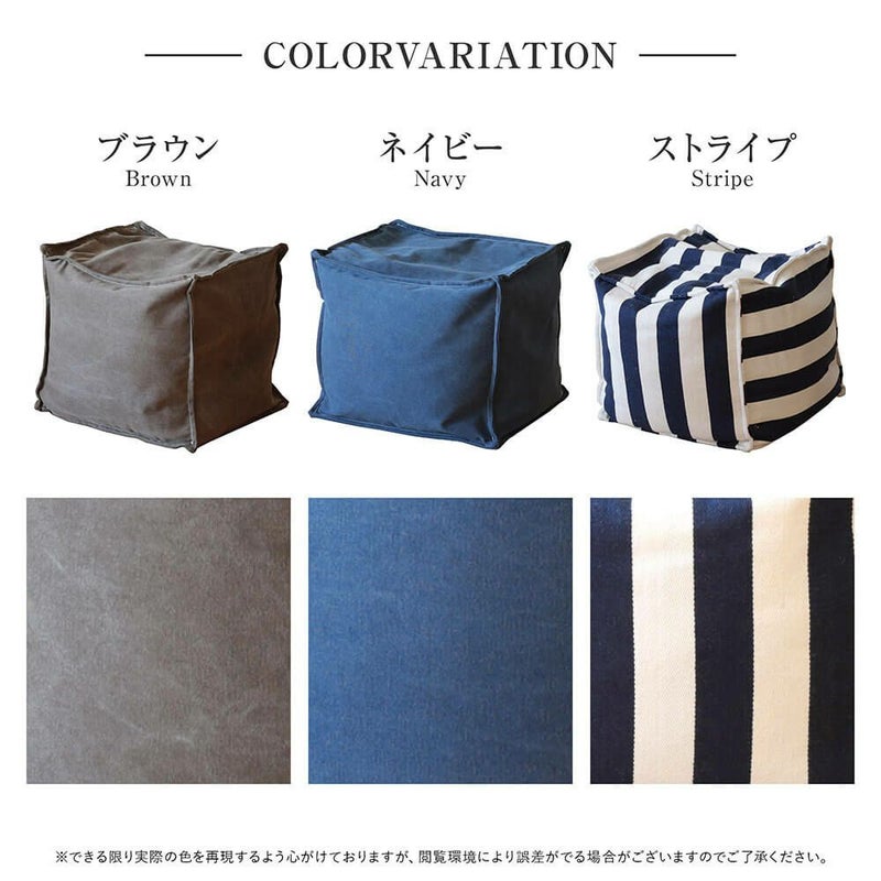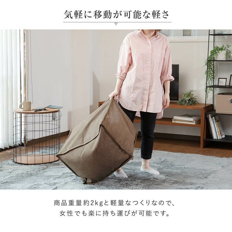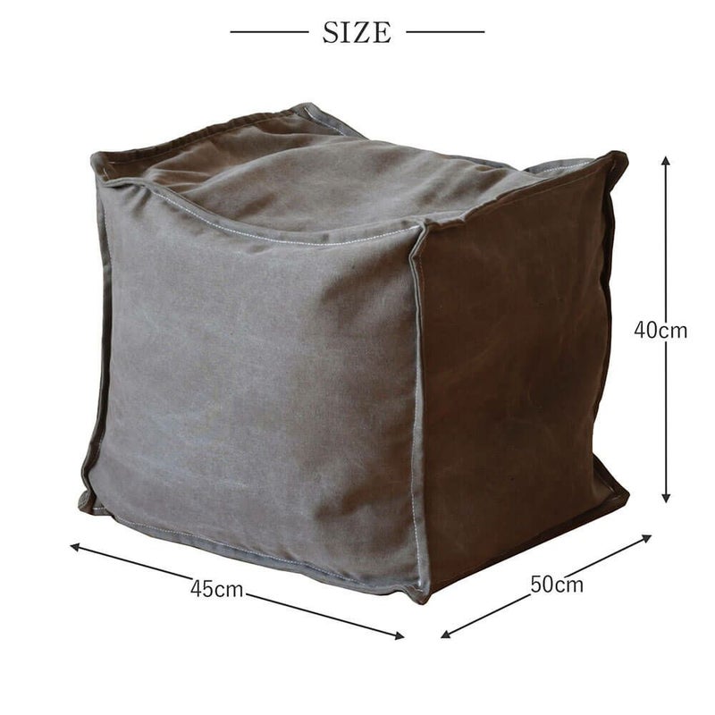 生地に帆布を使用した、くつろぎ空間にぴったりのスツール。厚めの生地を使っているので、しっかりとした味のあるつくりになっています。中材は発砲ビーズなので軽量、女性でも持ち運びが楽にできます。