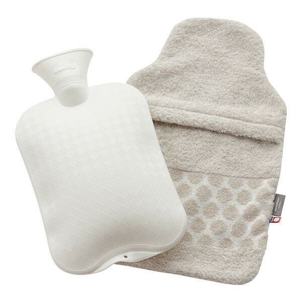 ボトルはドイツ・ファシー(fashy)社製です。寒い時期はお湯を、暑い時期は冷水を入れて使えます。カバーは取り外しが簡単で、ご家庭の洗濯機でお洗濯が可能です。(ネット使用推奨)