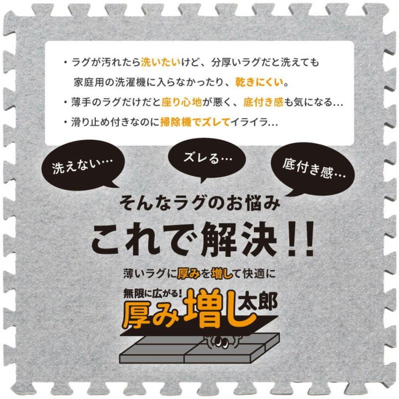 ラグやカーペットの下に敷く、下敷き用のラグです。もっちりふかふか高密度のウレタンで、厚みが2cmアップ。ジョイント式でカット可能なので、上に敷くラグに合わせてサイズが自由自在です。