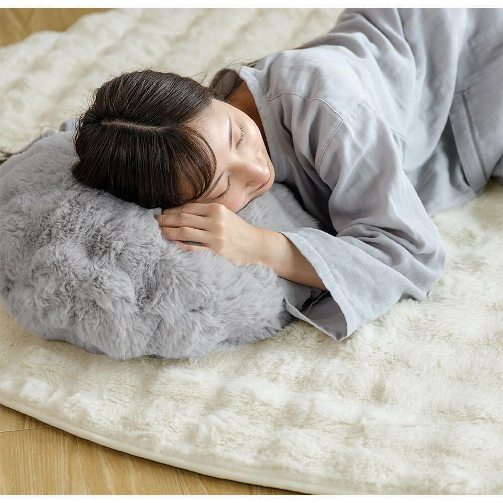 まるで雲の上のようなふわふわ感、とろけるような至福の肌ざわり。もこもこのデザインと、素材が持つなめらかな色合いで、お部屋のインテリアとしてもオススメです。