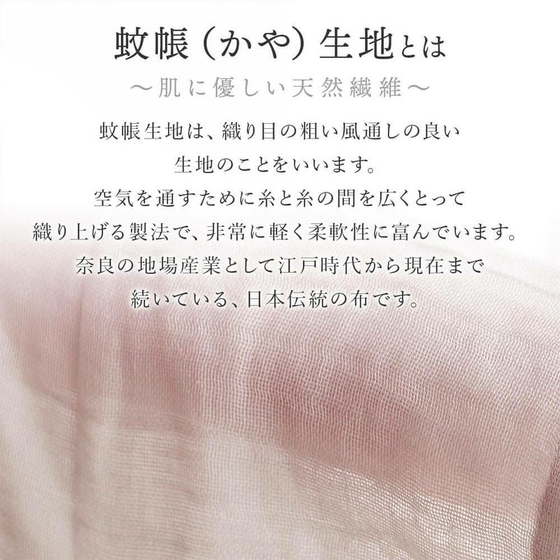 風通しが良く軽やかな蚊帳(かや)生地。江戸時代から現在まで奈良県の地場産業として続く、日本伝統の布です。
