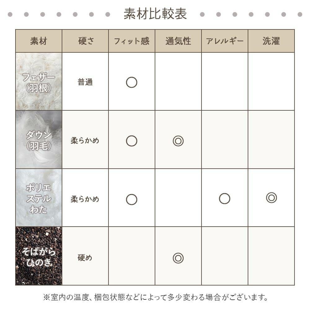 当店取り扱いの枕サイズ