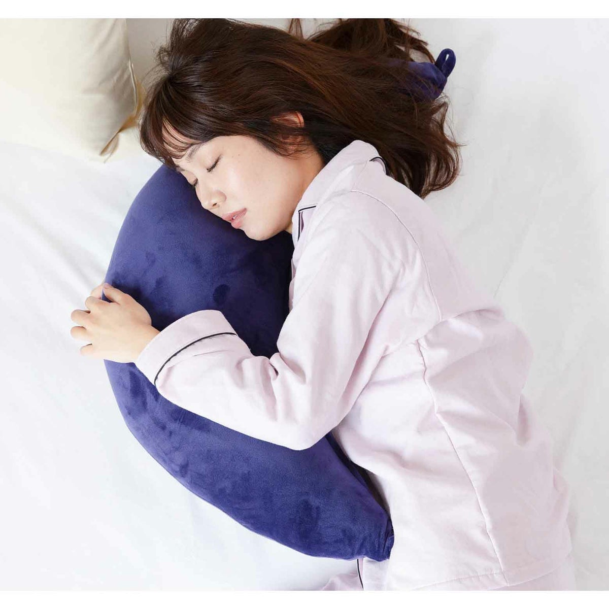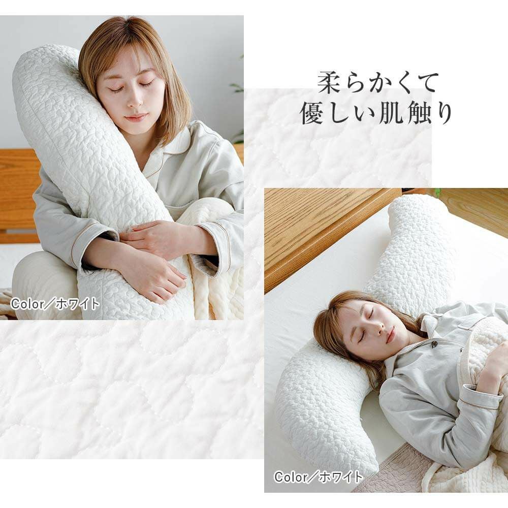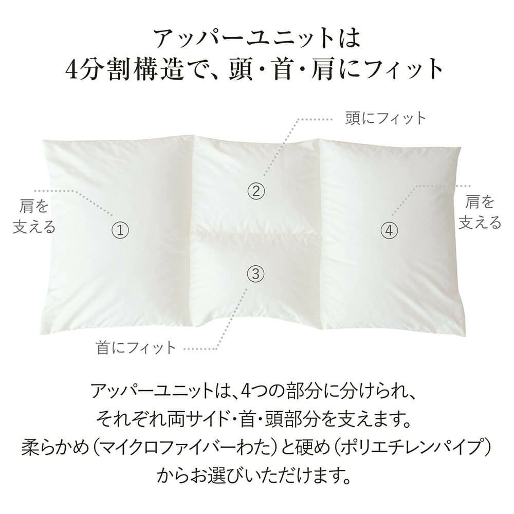 枕の正しい使用位置は「枕に頭を乗せ、肩口があたる」くらいの位置です。後頭部から首筋にかけての全体で頭部を支え、首のこりや肩こりを軽減します。枕に肩を乗せてしまうとかえって体に負担がかかります。画像のように、肩と枕がしっかり触れるように当てて眠るのがベストです。