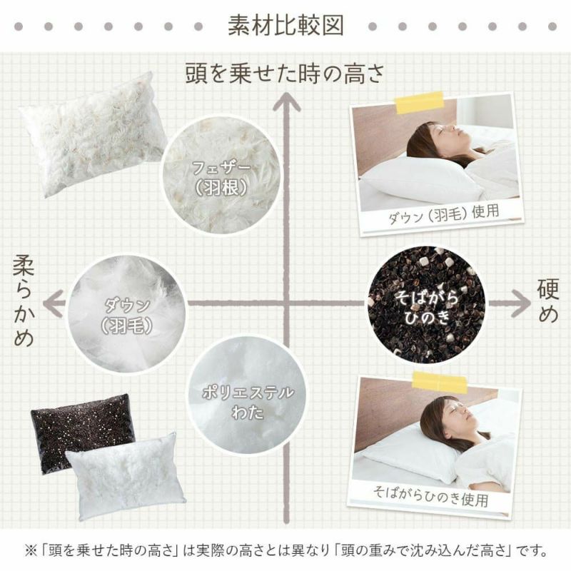 水鳥の羽根(フェザー)を100%使用したボリュームたっぷりの羽根枕。フェザーの弾力性が首をしっかり支えてくれます。