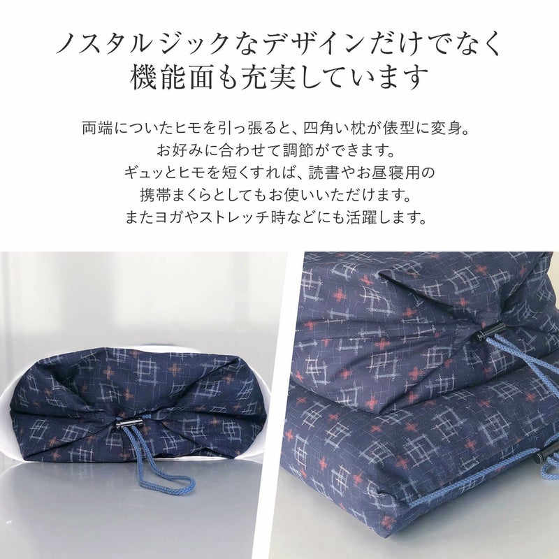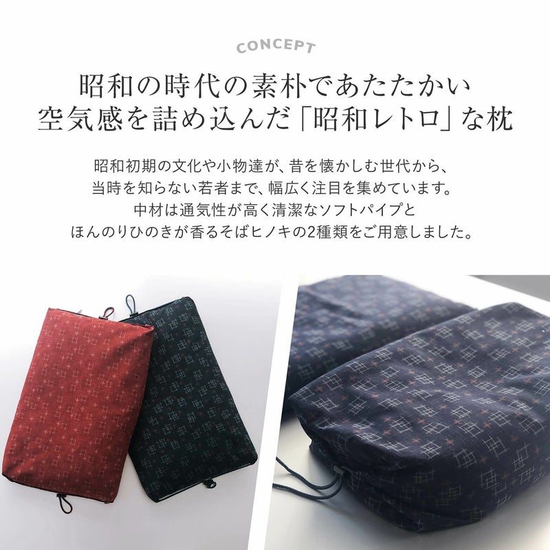 昭和の時代の素朴であたたかい空気感を詰め込んだ、「昭和レトロ」な枕。中材は通気性が良く、清潔なポリエチレンパイプを使用。季節や温度などの環境に左右されず、一年を通していつでも快適に過ごせます。