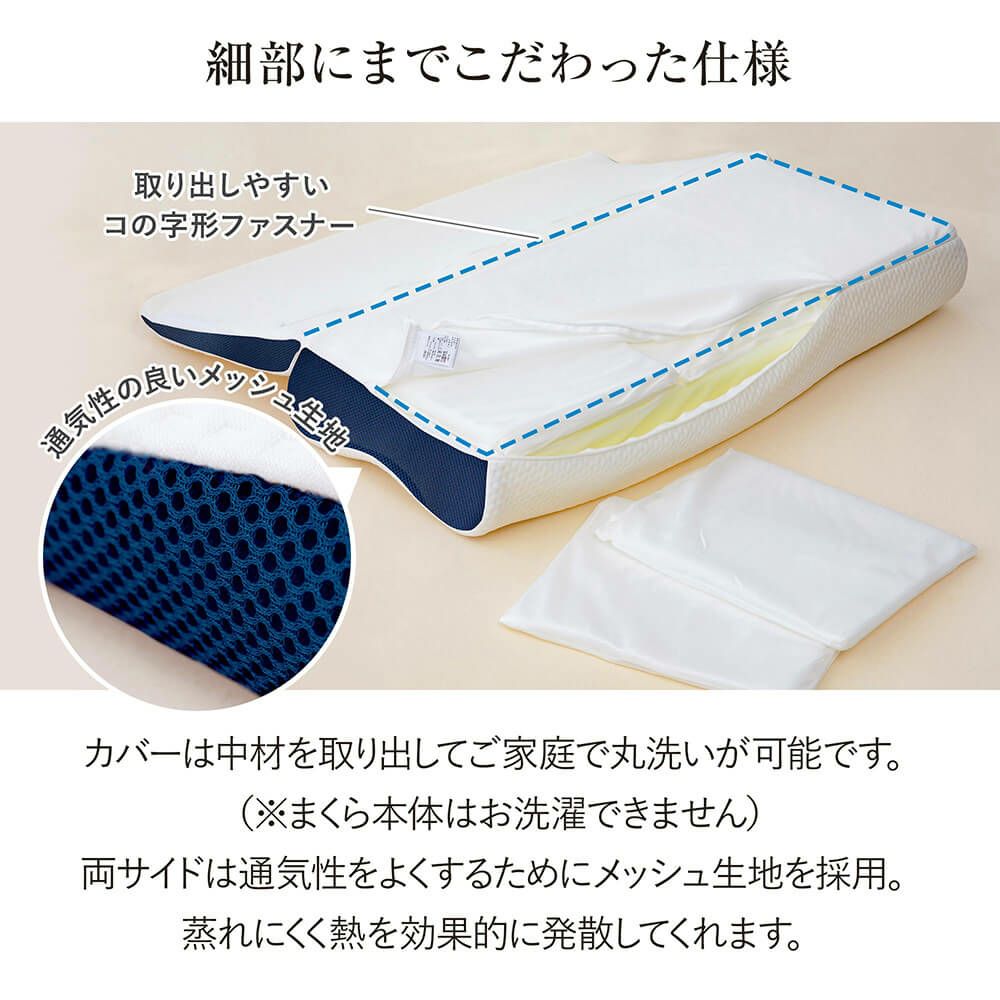 カバーは取り外してお洗濯可能。まくら本体はお洗濯できません。