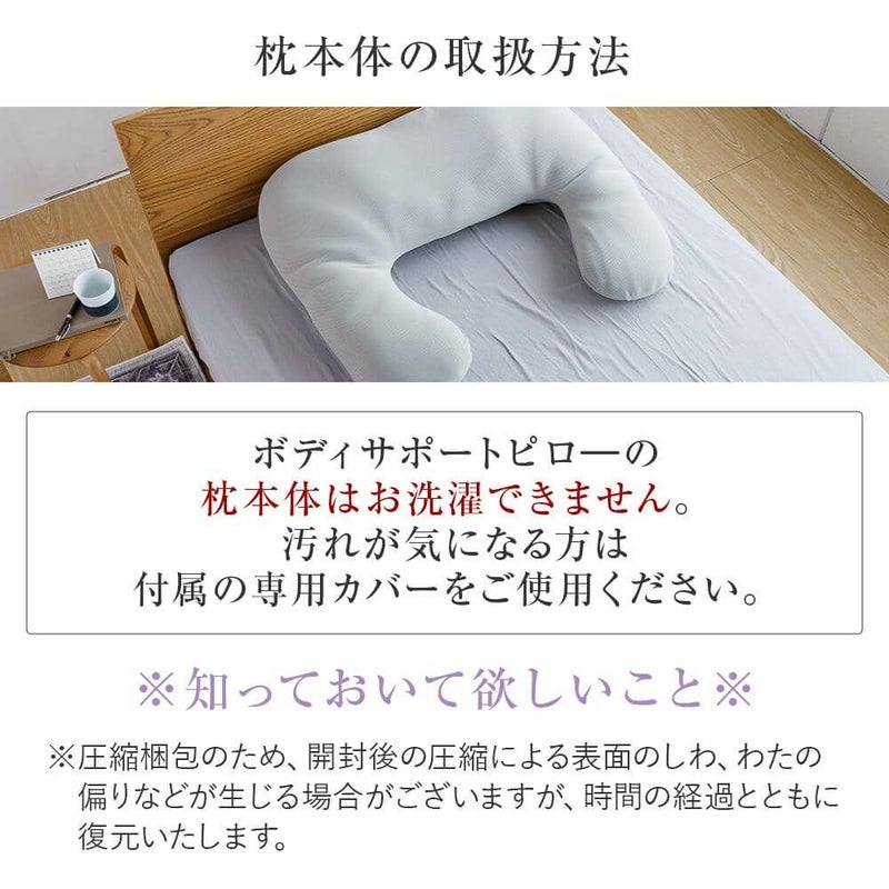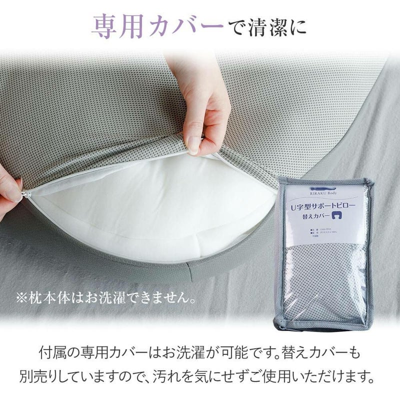 ※枕本体はお洗濯できません。汚れてしまったら、水やお湯で薄めた中性洗剤を布にしみこませ汚れた部分を拭き取ってください。臭いや汚れが気になる場合は、市販の除菌スプレーを製造メーカーの注意事項、使用方法をご確認のうえ、ご使用ください。