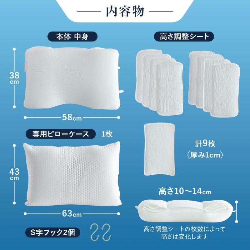 高さ調整シートが計9枚付属しており、セミオーダー感覚でご自身に合った枕へ。