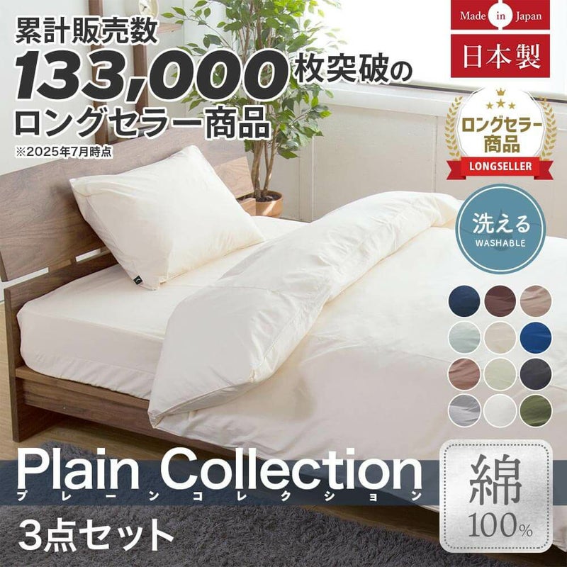 12色から選べる国産寝具3点セット(キングベッド用) ボックスシーツ(180×200cm)掛け布団カバー(230×210cm)枕カバー(43×63cm)