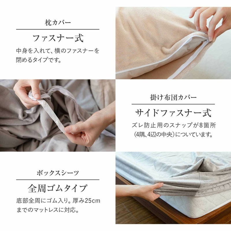 マイクロファイバーは髪の毛の1/100以下の細さの超極細繊維を使用しているので、とってもなめらかな肌触り。秋冬の定番マイクロファイバー素材の、ふんわりやわらかな寝具セットです。