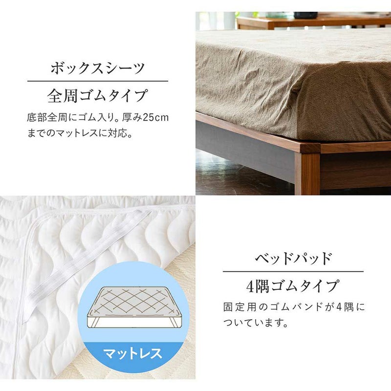 「今治タオルブランド」の国産タオル生地の「ボックスシーツ」と当店おすすめの気軽に洗える「ベッドパッド」をセットにしました!