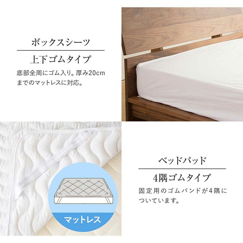 当店人気ナンバーワンの「国産ボックスシーツ」と気軽に洗える「ベッドパッド」をセットにしました!ベッドで眠るための必須アイテム「ボックスシーツ」「ベッドパッド」の2点セット。