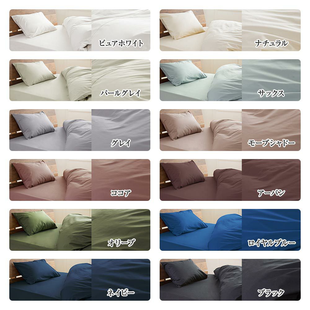 カバーリングは生活のシーンに合わせて自由に選べる12色の中から、お好みのカラーをセレクトしてください。安心・安全の国産寝具の綿100%!ホテル寝具のようなサラッ、パリッとした肌触りがとても心地よく、お家で簡単にお手入れできるので、いつも清潔で安心です。