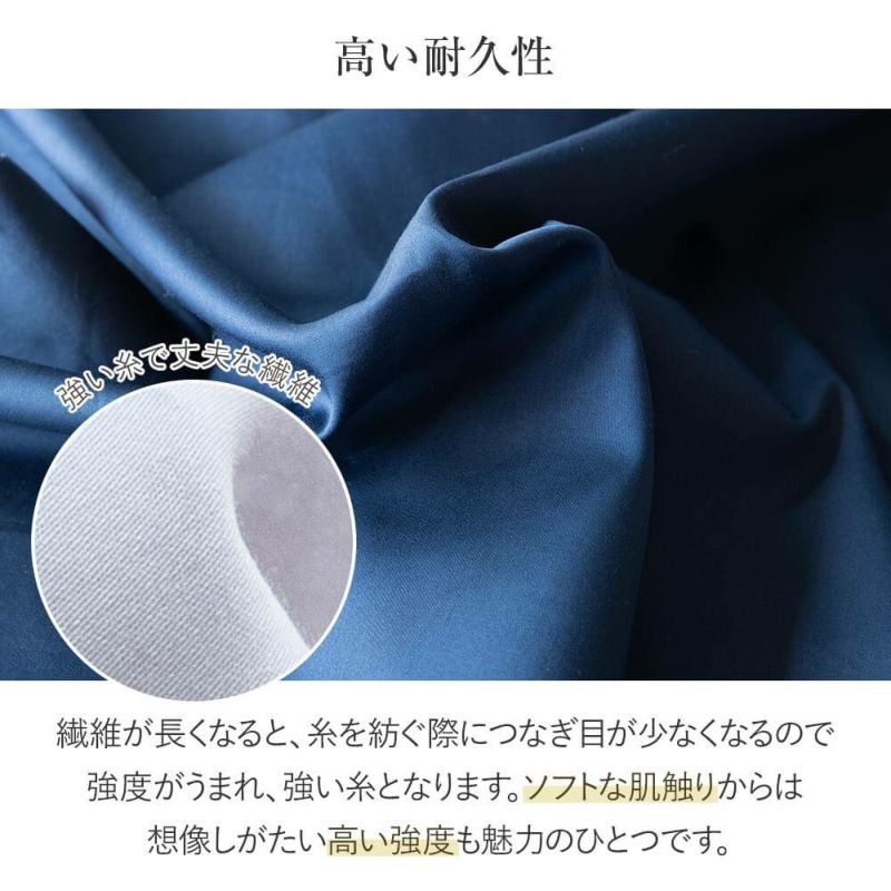 肌触りのよさ、強度、吸湿性、放湿性、軽さ など、様々な点で優秀な素材とされる「超長綿」を100%使用したカバーリングです。全生産量のうち5%しかとれない希少価値の高い超長綿は、「綿のカシミヤ」と呼ばれるだけあり、その肌触りのよさは抜群です。