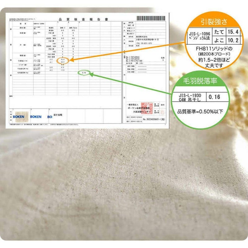 ナチュラル色のみ、綿の素材を敢えて生地に残し、素材感を楽しんでいただける表情となっています。