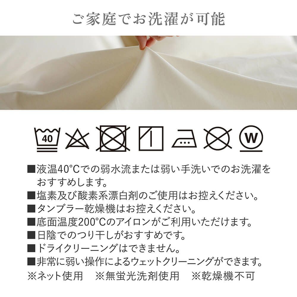 製品が出来上がるすべての工程において、環境や社会に配慮した方法が実行されている事の証しです。肌ざわりだけでなく、使う人の気持ちまで快適になるような寝具です。