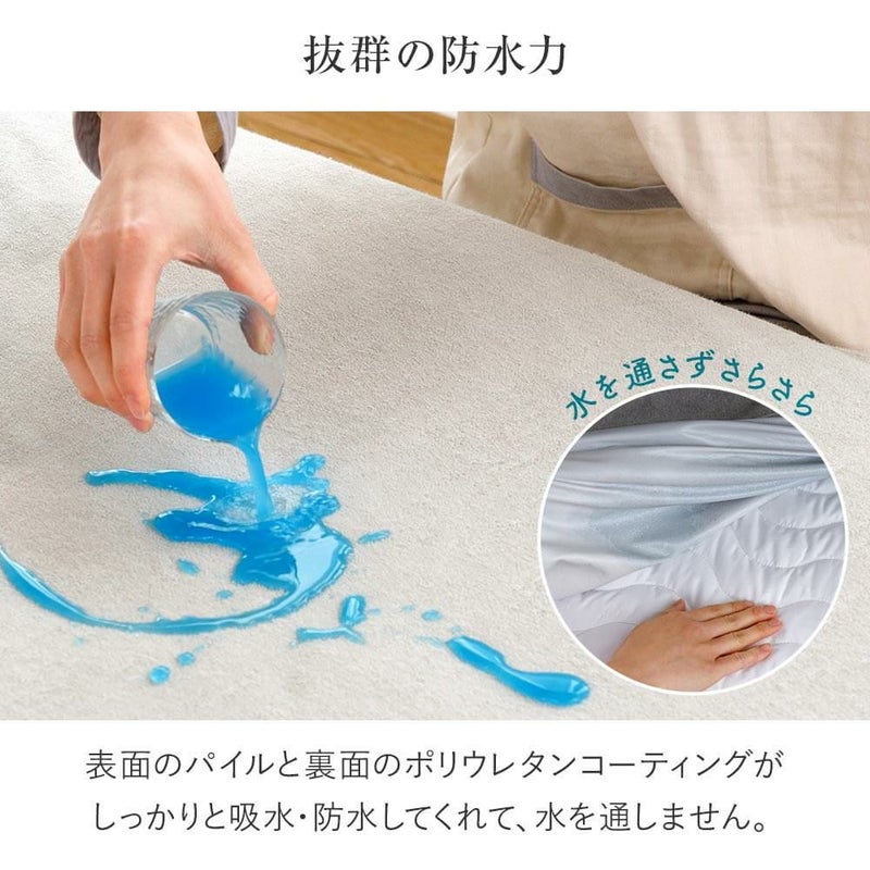 お子様のおねしょや介護など、ニーズに応じて様々なシーンで大活躍する防水シーツです。防水効果の他にも、ダニ・ホコリなどが通る隙間もなく、安心してご使用いただけます。