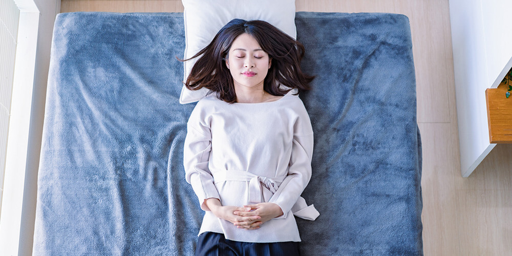 ベッドの上で横になったまま、リラックス効果を高めるツボを刺激することも有効です。