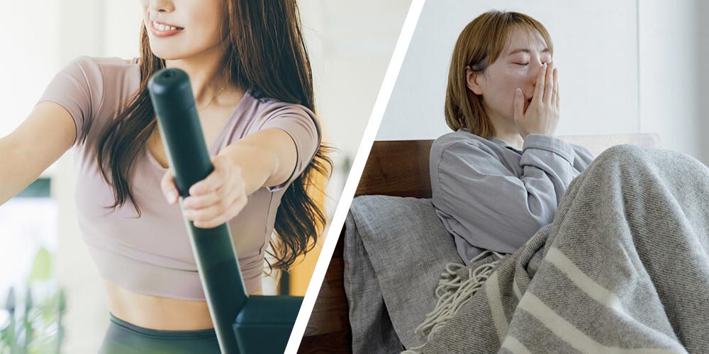 寝不足で筋トレを行う場合は、午前中に済ませることがおすすめです。寝不足だと活動時間が長くなるにつれ、疲労が溜まりやすい状態になります。集中力も低下するため、午前中に済ませるようにしましょう。また、人間の身体は朝、副交感神経が優位の状態にあります。筋トレを行うことで交感神経を刺激するため、自律神経のリズムを整えることにもつながります。