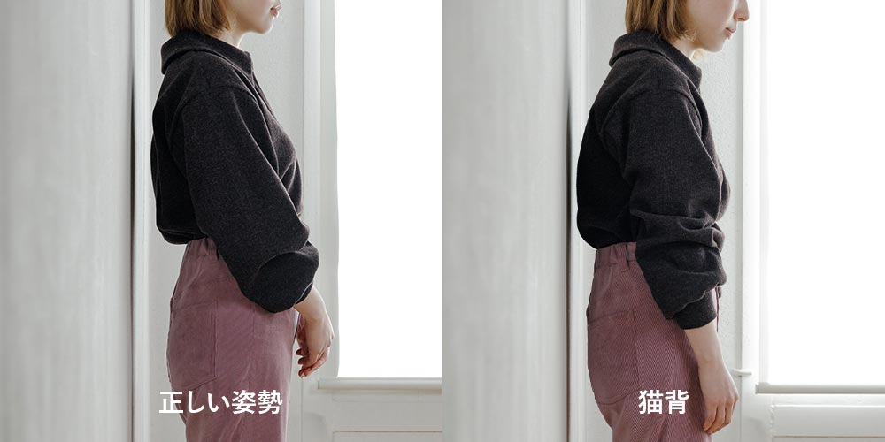 また、足を組んだり、頬杖をついたりする姿勢も猫背の原因につながります。デスクワークや検品作業のように前屈みになる状態が長時間続く場合は、正しい姿勢を意識しながら、定期的にストレッチする習慣をつけておきましょう。