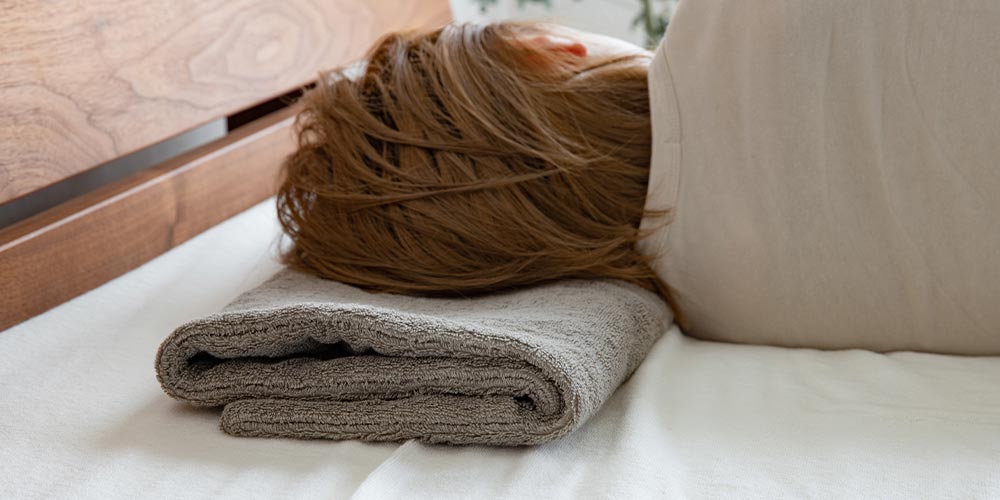 ストレートネックの改善をサポートする方法の1つとして、タオルを枕として使う「タオル枕」があります。タオル枕は手軽に実践でき、自分好みの高さに調節することもできます。具体的な作り方については次の項目で紹介します。