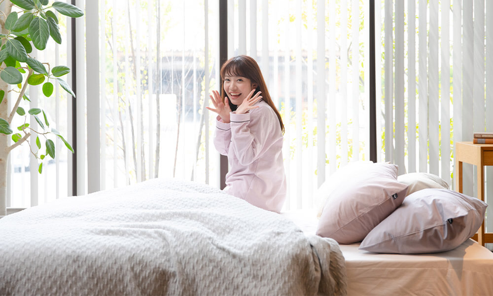 一般的には、睡眠中に20回程度の寝返りをうつといわれています。寝返りは睡眠の質にも影響があるため、適切な重さの寝具で就寝しましょう。