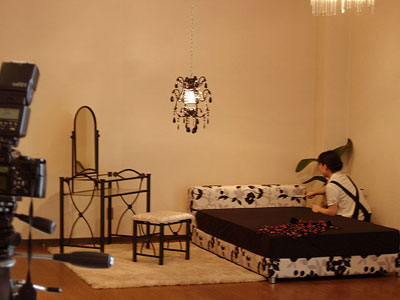 シーツにピシーッとアイロンをあて、コーディネートの家具や照明を選び、