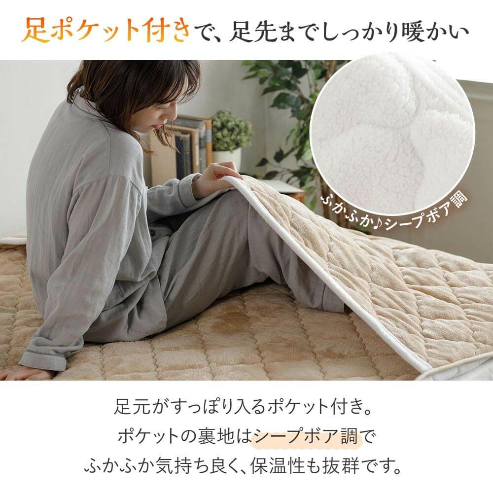 吸湿発熱ふわふわマイクロファイバー足ポケット付敷パッド(220×200cm)