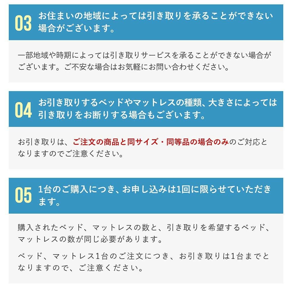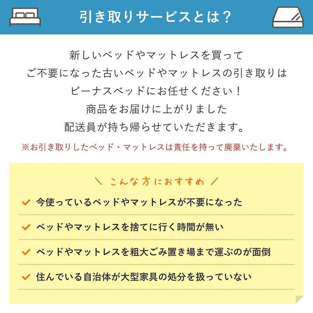 ご不要ベッド引き取りオプション(ベッドフレームまたはマットレスのみ)