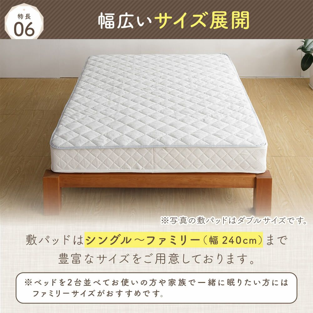 他の画像を見る 【ファミリー用 260cm】防ダニ コットンツイルとベッドパッド2点セット ボックスシーツ(260×200×25cm) ベッドパッド(260×200cm) ¥ 12,498 税込 カートに入れる お気に入りに登録する